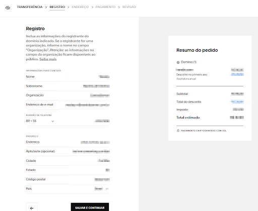 Nota: Neste momento seu domínio estará em processo de transferência portanto todos os serviços atrelados ao domínio fica temporariamente indisponível até a conclusão e alteração dos nameservers.